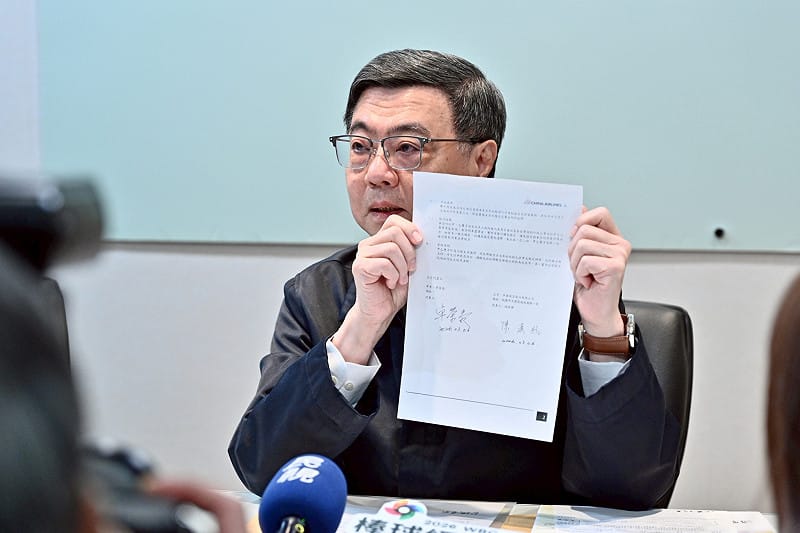和華航的包機合約書。 圖:行政院提供
